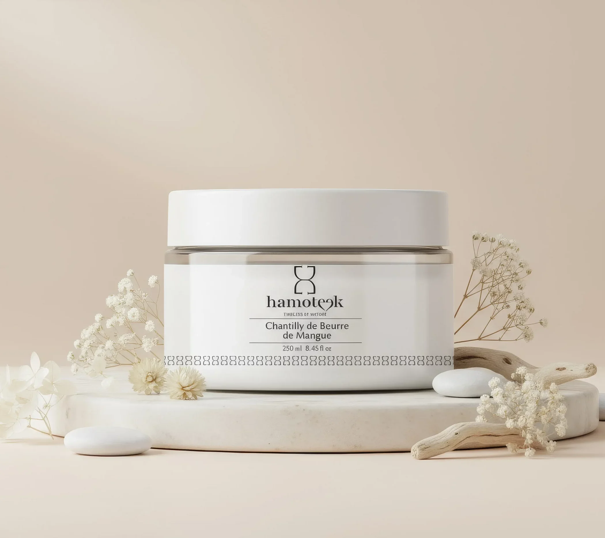 La chantilly de mangue / karité est un soin luxueux qui allie une texture crémeuse, légère et onctueuse pour offrir une expérience sensorielle unique. Sa formule riche est spécialement conçue pour nourrir en profondeur les zones sèches ou très sèches de votre peau et de vos cheveux.
